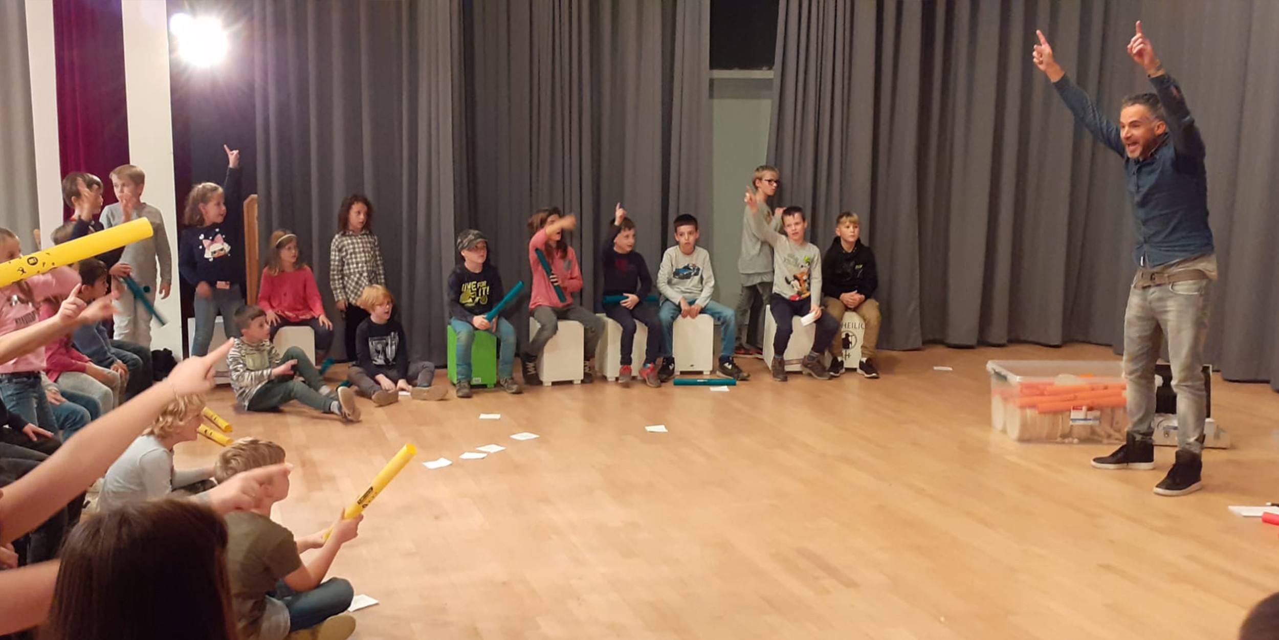 In unserem Ferienprogramm üben wir, wie man auf verschiedenen Instrumenten (Cajon, Djembe, Boomwhacker) spielt. Unter der Anleitung eines Künstlers findet an verschiedenen spannenden Tagen ein Trommelworkshop statt. Wir basteln unsere eigene Papp-Cajon, erlernen Performances und veranstalten gemeinsam ein Abschlusskonzert.